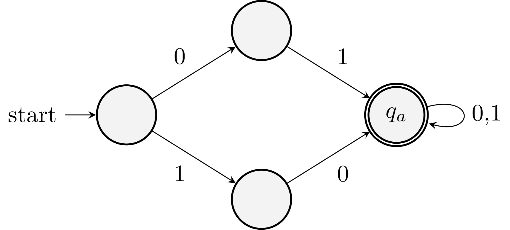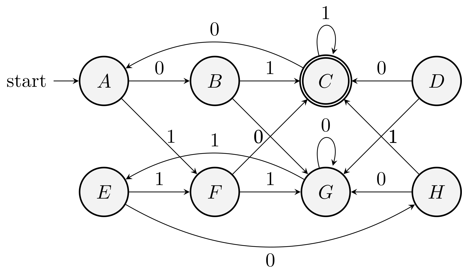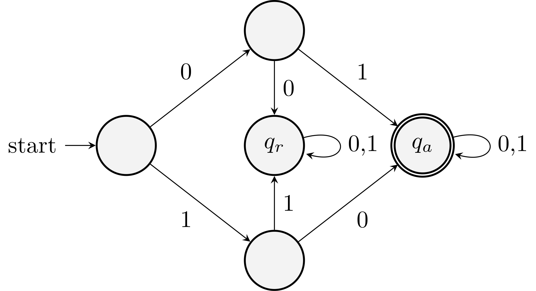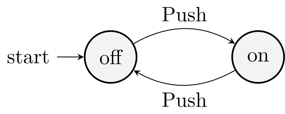 Example 1. Figure 1.1, push a button and switch between on and off, starting from off.